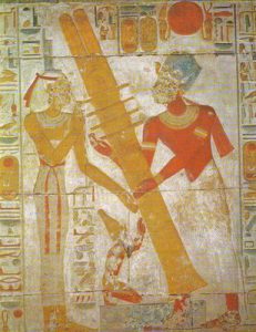 Se infatti ci rifacciamo al mito di Osiride, si narra che sulla cassa dove fu rinchiuso il dio, crebbe un albero di Melograno, poi, rappresentato dallo zed, antichissimo disegno per tradizione associato al suo culto, ma, in realtà, molto più antico, dato che si trova raffigurato anche in tombe del periodo predinastico, mentre il nome del dio non lo troviamo prima della V° dinastia. L’albero cresciuto sulla cassa costruita da Tifone e dunque un simbolo fallico di resurrezione, spesso rappresentato nei sarcofagi, proprio con il compito di riportare in “vita” il defunto.