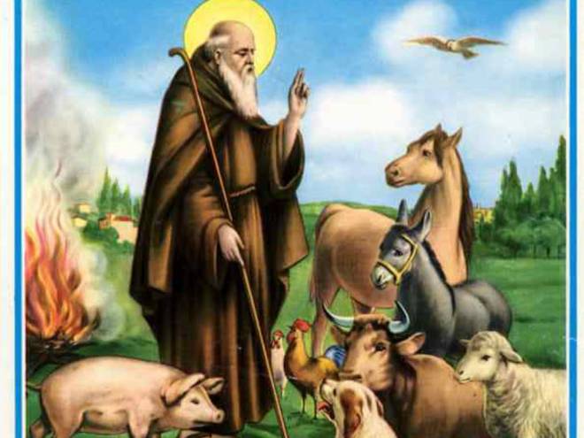 Non si può dimenticare poi l’usanza di affiggere, sull’ingresso delle stalle o dei dormitori degli animali, immagini e santini raffiguranti il santo raffigurato circondato da animali e con il fuoco in mano. A queste forme fortemente “cristiane” si associano poi le formule magico -apotropaiche per guarire gli animali, come nel caso di un antico rituale che parla di collocare su un piatto due chiavi incrociate, una maschio e una femmina, e di ripetere per tre volte