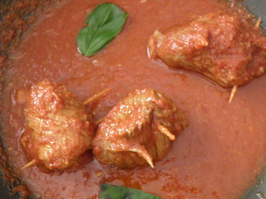 Il sugo veniva così utilizzato per condire la pasta, e la carne consumata come seconda portata. Il ragù di cui abbiamo parlato finora però è quello definito alla napoletana, ben diverso da quello alla barese se si può dire che ne esista uno solo.  Parafrasando uno scritto di Giuseppe Marotta, “‘l’oro di Napoli”, “Da quanti secoli ogni  domenica, come la messa sugli altari, ricorre il ragù sulle mense pugliesi? Fin dalle primissime ore del mattino un tenero vapore si congeda dai tegami di terracotta….” Fin qui tutti d’accordo è sul seguito che si aprono le diatribe. Secondo la Tradizione il tipico ragù barese è rigorosamente di cavallo: un vecchio proverbio recita “carne de vaccine, sbrevogne a cci la checine”, ovvero, “la carne vaccina fa fare cattiva figura a chi la cucina”. In particolare venivano realizzate delle braciole, termine molto antico tanto da essere già stato usato da Ippolito Cavalcanti, famoso poeta e amico di Dante. Si stendono delle fette sottili di carne su di esse si pongono un pezzettino di formaggio romano, un pezzettino di lardo, tre foglie di prezzemolo, sale e pepe. Le fette così realizzate si arrotolano e si avvolgono rigorosamente con filo di cotone. Nel frattempo si pone sul fuoco un tegame con olio, pezzetti di lardo e cipolla. Si fanno così imbrunire le braciole  aggiungendo di tanto in tanto un po’ d’acqua. A semi-cottura della carne si aggiunge salsa di pomodoro e un po’ di prezzemolo, sale, pepe e si lascia cuocere a fuoco lento per circa tre ore, aggiungendo  acqua per compensare quella evaporata. Mistero Risolto? No, perché Luigi Sada nella Cucina della Terra di Bari ci presenta un altro tipo di ricetta “in un pignatino versare olio d’oliva, aglio, cipolla affettata, sale e pepe, un braciolone di vitello, con dito è legato con uno spago, la salsa, foglie di basilico spiccate dal arbusto piantato nel vaso di terracotta e far cuocere il tutto lentissimamente. quando cominciano a sprigionarsi le prime nuvolette di profumo, far scendere nel pignatino una sorsata di vino bianco, una cucchiaiata di conserva sciolta in bicchiere d’acqua tiepida”. Il resto, secondo l’autore lo farà l’amore e la vigilanza da attuare per non meno di 3-4 ore girando di tanto in tanto con un cucchiaio di legno finché non risulterà un sugo denso e l’olio sarà venuto a galla. In questa ricetta il cavallo è sparito ma è rimasta sacra la Braciola….eppur si puote….anche senza. È sempre, infatti, il Sada che ci propone una variante, il ragù del “beccaio”, preparato con carne varia come maiale, agnello, vitello e cavallo con un procedimento di cottura simile a quello precedente.