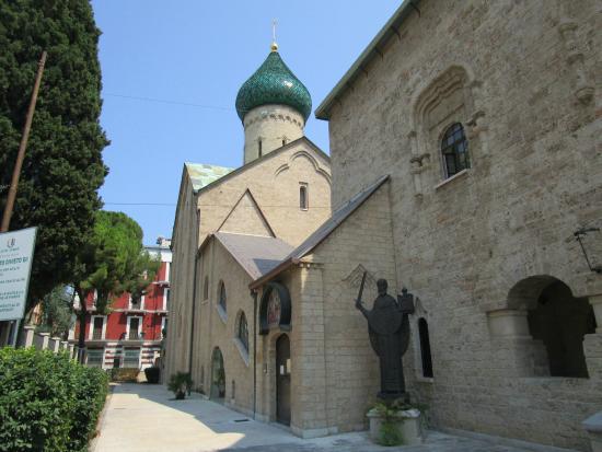 La progettazione della chiesa nello stile architettonico di Pskov e Novgorod viene assegnata al famoso architetto russo Sciusev. La chiesa russa sarebbe stata edificata contemporaneamente alla chiesa russa “di Bari” a Pietroburgo, tutt’oggi esistente. Purtroppo a causa della guerra e della mancanza di fondi, viene completata solo nel 1937 e consacrata il 22 maggio 1955, successivamente ceduta al comune e nel 2009 restituita al presidente russo Dmitrij Medvedev. Il complesso, costituito, oltre cha dalla chiesa vera e propria, da un albergo per i pellegrini, fa oggi capo al Patriarcato di Mosca. Insomma, Bari davvero è crogiuolo di fedi, culture ed etnie.
