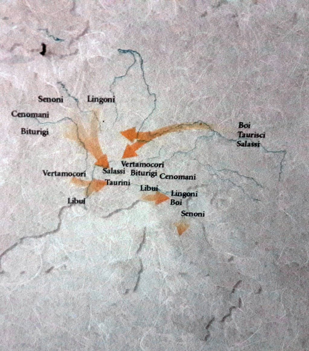 Tra la fine del V e l’inizio del IV secolo a.C., utilizzando i valichi alpini della val d’Aosta e della val di Susa,i primi “celti” raggiungono il Piemonte e di lì le ricche aree agricole del centro della Pianura Padana (Fig.2).