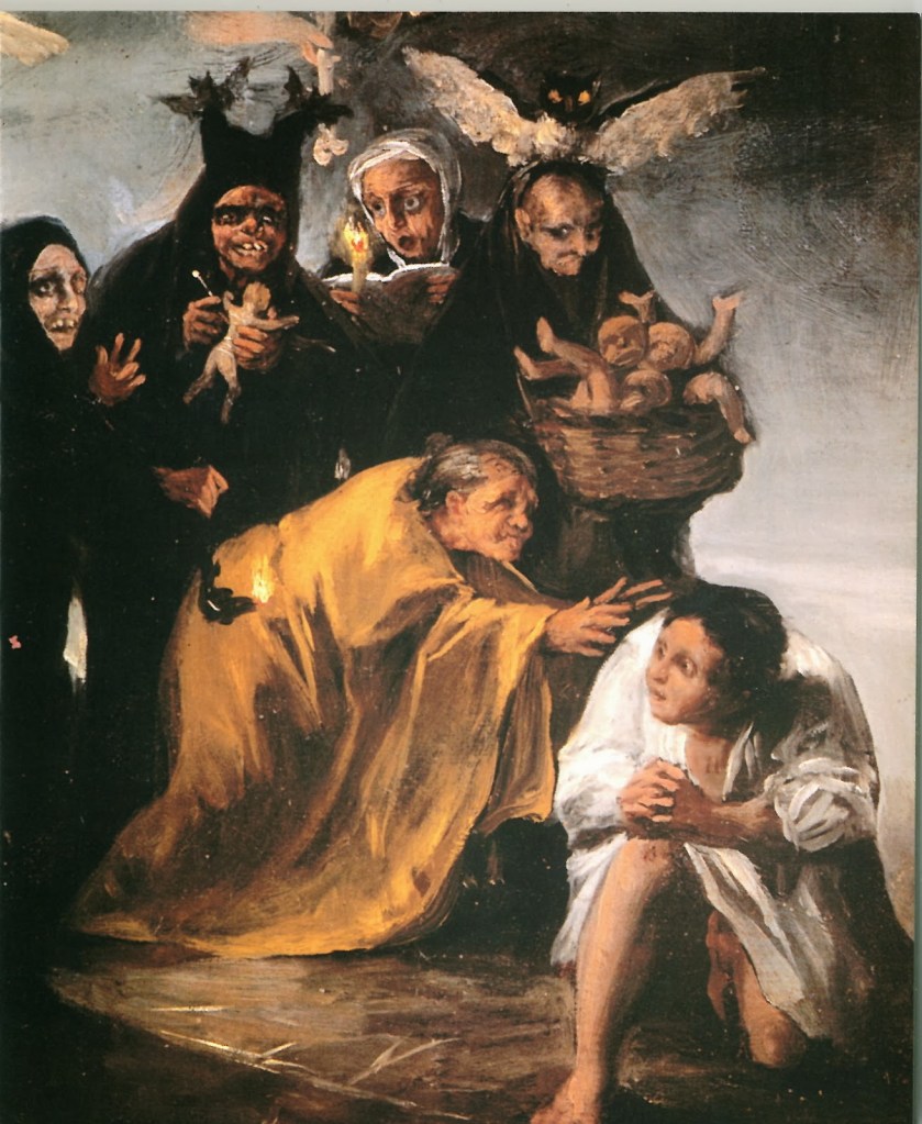 Goya riesce, nei suoi dipinti, a legare ragione e vecchia concezione. Non dimentichiamo che questo è il periodo in cui gli umanisti come il Maffei o il Tartarotti si iniziano a interrogare su cosa abbia davvero prodotto il fenomeno “strega”. L’immagine di questa deve iniziare ad abbandonare i canoni immaginifici medievali per divenire espressione della donna insoddisfatta, sfruttata, triste, espressione e forma di un malessere psico-sociale.