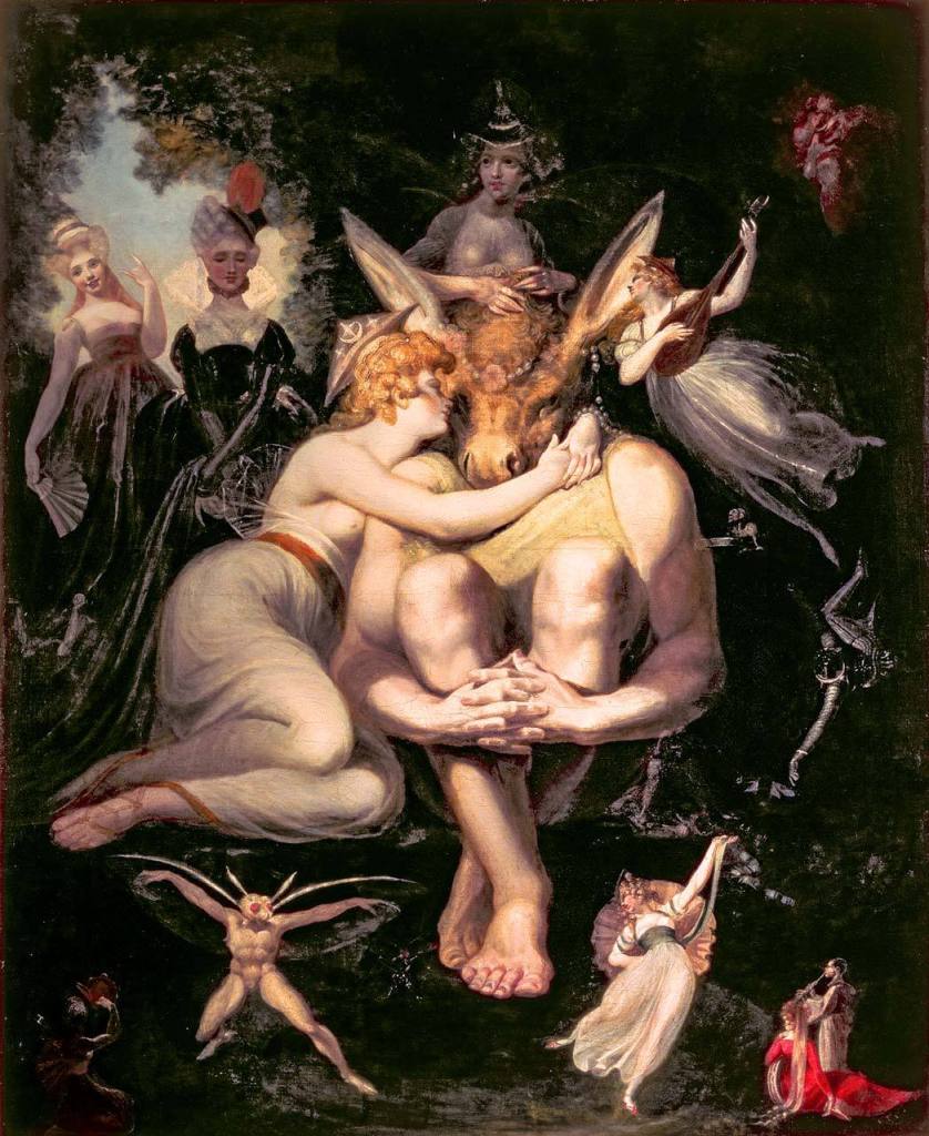 Terminiamo il nostro excursus tra le raffigurazioni della strega con il Romanticismo. Questo moto spirituale europeo di notevole complessità che tra la fine del sec. XVIII e i primi decenni del sec. XIX, ripropose, non senza contraddizioni e ambivalenze, l’idea di libertà come fondamentale esigenza dell’individuo e l’aspirazione soggettiva alla religiosità, nonché il carattere istintivo e fantastico della creazione artistica e letteraria riscopre nuovamente il bello nascosto nella strega. E’ il momento in cui il gotico esplode con prepotenza, pensiamo, ad esempio, al Castello di Otranto di Horace Walpole. In questo secolo nascono Dracula, Frankenstein, le storie di Edgar Allan Poe. La condizione del mostro come essere pensante è magnificamente espressa da Heinrich Fussli nel suo Titania Sveglia (Fig.14). Qui un uomo con la testa d’asino è stretto affettuosamente da una ninfa.