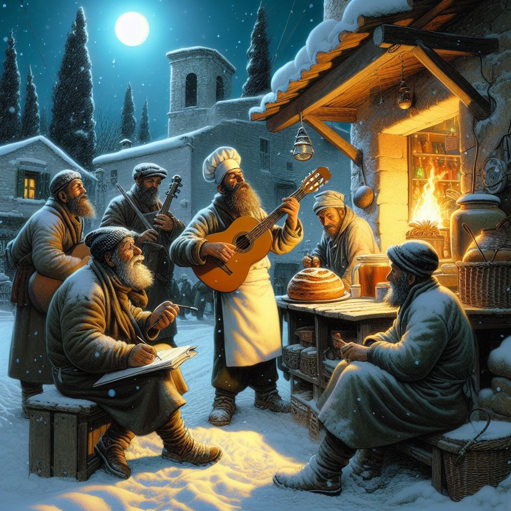 Torniamo però in Italia e raggiungiamo ora Toritto, in provincia di Bari, dove ancora oggi, nella notte dell’antivigilia di Natale, ossia tra il 23 e il 24 dicembre, le strade si popolano di gruppi di cantori e musicisti – un tempo garzoni dei forni, da cui il nome “fornai” – che intonano antiche melodie natalizie davanti alle case, ricevendo in cambio cibo, bevande, offerte e auguri. Questa pratica, densa di significati religiosi, sociali e culturali, non solo conserva un legame profondo con la storia locale, ma riflette anche la capacità di una comunità di mantenere viva la propria identità attraverso la musica, il racconto orale e la condivisione di momenti di festa.