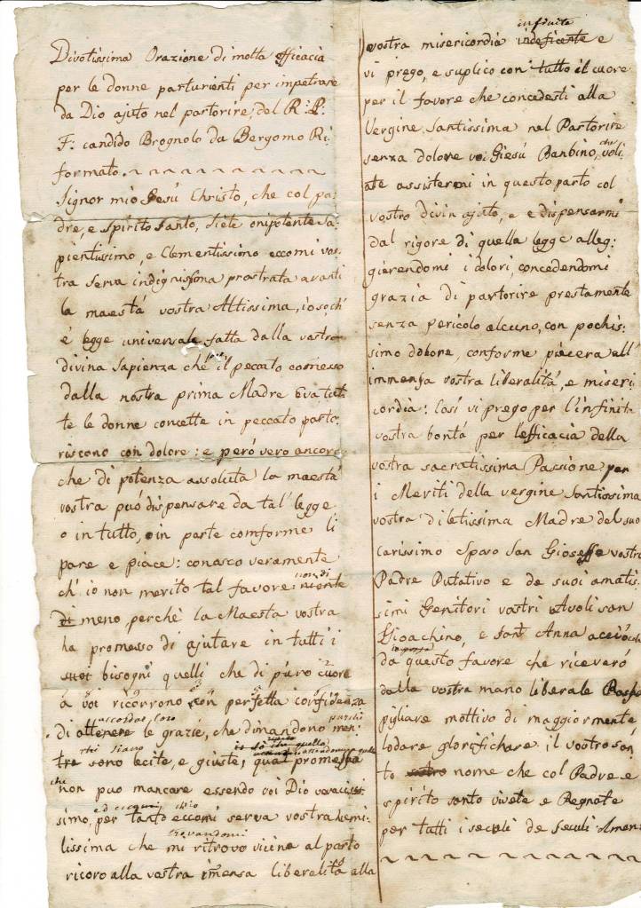 Per alcuni decenni le tesi di Brugnoli circolarono indisturbate nonostante dessero scandalo negli stessi ambienti ecclesiastici. Ufficialmente la Chiesa chiedeva sempre più di allentare la caccia alle streghe e l’utilizzo di rituali e formule. Gli scongiuri del Brugnoli circolavano in maniera illegale tra monasteri e esorcisti, come testimonia il documento in figura 6, una sorta di benedizione per favorire le donne partorienti.