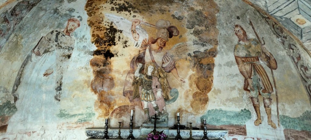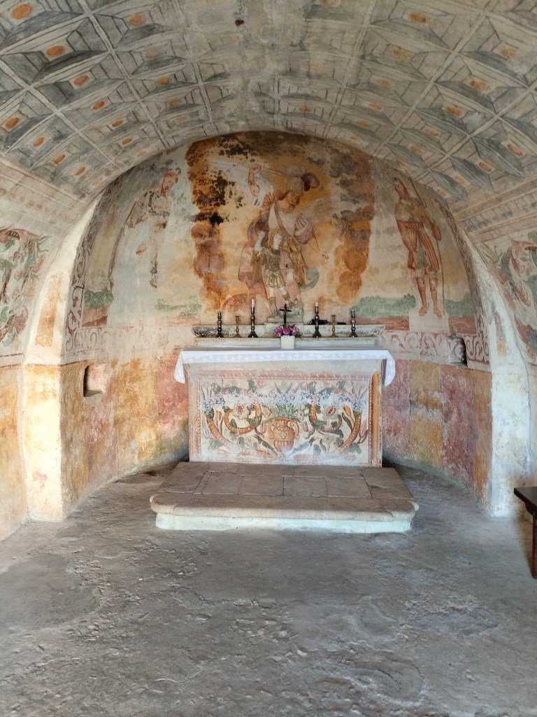 Seguendo il percorso proposto giungiamo presso la chiesetta rurale di San Michele Arcangelo del 1692, in contrada Lago Petto, a pochi passi dal centro abitato. Si tratta del luogopiù antico di culto dell’Arcangelo al cui interno è presente anche un pozzo con acqua fresca, elemento legato al culto, e una statua in pietra di San Michele. Il sito sarà approfondito in altra sede per la sua estrema importanza e bellezza.