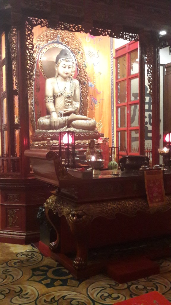 In realtà, se viaggiamo nel cuore della Cina esistono vie del Buddhismo che potremmo definire più “ popolari”, fuse in maniera oramai indistinguibile con i culti autoctoni. Tale religione, infatti, nella sua visione più pura, incontrava grandi difficoltà sia nelle terminologie sia nelle sue finalità quando si incrociava con le esigenze del popolo che erano molto più materiali e ai quali non dava risposte alle difficoltà della vita di tutti i giorni. I monaci iniziano così, in una sorta di pragmatismo sincretico, ad adattare il nuovo credo alle esigenze e conoscenze del popolo. Inizia una vera e propria gara tra Buddismo e Taoismo su chi proteggeva meglio i cinesi nella vita quotidiana e quindi da demoni, anime dannate, spiriti dei cimiteri, dei quali, dei posti, delle foreste eccetera…Immagini del Buddha iniziano a risponderti, scolpite o dipinte, i luoghi magnifici dove i cinesi potevano realizzare piccole nicchie e cultuare il loro Buddha preferito. E’ così che nascono le grotte sacre come quella dei Mille Buddha di Yun-kang, Long-men, Touen-houang o sul fiume Li nei pressi di Guilin, che abbiamo visitato direttamente. La devozione dei cinesi si rivolse in preferenza al Buddha Maitreya, il Buddha della guarigione e della medicina, descritto come un medico che cura la sofferenza, il Buddha Amitabha, noto per gli attributi di longevità e capacità di discernimento, Bhaisajyaguru ancora un maestro della medicina, e Kouan-yin, colui che libera da ogni pena. Questi molteplici bodhisattvas non sono solo espressione della devozione Popolare, male ritroviamo anche all’interno le più importanti templi buddisti come quello del Buddha di Giada a Shanghai. Fondato nel 1882, deve il suo nome a due statue di Buddha di giada importate a Shanghai dal Myanmar via mare. In particolare si tratta di una statua del Buddha nella posizione del Loto alta 1,95 metri con un viso ben arrotondato, sopracciglia a forma di mezzaluna, occhi semiaperti che guardano in basso, naso dritto e bocca chiusa con le labbra in alto.