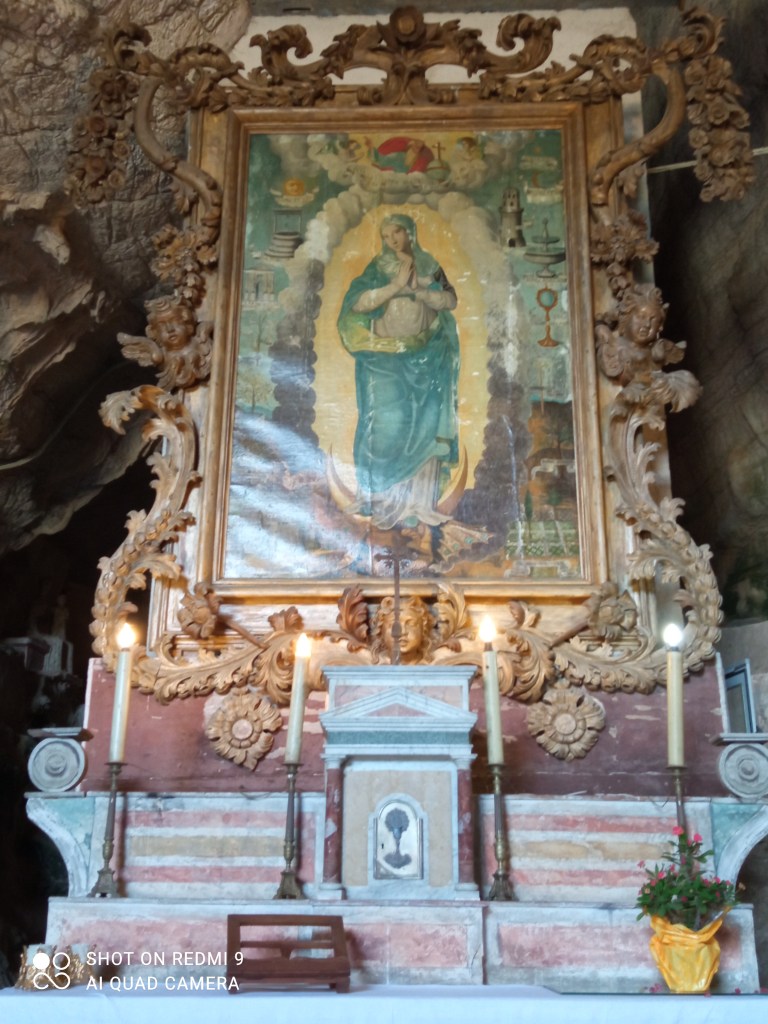 Sono poi presenti sculture e Affreschi Trecenteschi lungo le pareti della grotta si possono ammirare affreschi risalenti al Trecento, testimonianza dell’arte sacra di quell’epoca. Ogni dettaglio delle opere d’arte rivela l’abilità e la devozione degli artisti che hanno contribuito a rendere questo luogo un santuario di pace e contemplazione. Al fondo della grotta si erge un altare seicentesco, una creazione magnifica commissionata dall’abate Fabio Caracciolo. Su questo altare si eleva la statua in marmo di San Michele Arcangelo, patrono del luogo, simbolo di protezione e di forza spirituale per i fedeli che qui si recano in preghiera.