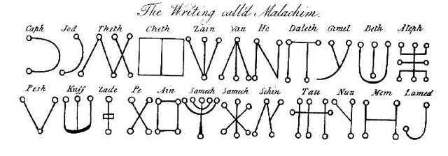 Il primo alfabeto da approfondire è l’Alfabeto Malachim , da una forma plurale dall’ebraico (מלאך, mal’ach) che significa “angeli” o “messaggeri. Una teoria suggerisce che l’Alfabeto Malachim sia stato creato da cabalisti ebrei nel Medioevo, intorno al XIII secolo, come parte della tradizione esoterica e mistica ebraica.Per altri l’Alfabeto Malachim ha radici più antiche, forse risalenti all’antica tradizione ebraica o persino a influenze provenienti da altre culture antiche. Indipendentemente dalla sua origine esatta, l’Alfabeto Malachim è diventato associato alla pratica della cabala e alla magia ebraica. L’Alfabeto è menzionato in diverse opere cabalistiche e testi mistici ebraici, ma probabilmente la prima opera a citarlo è L’Occulta Philosofia di Agrippa del 1500. Tuttavia, alcuni studiosi fanno riferimento a testi come il “Sefer Yetzirah” (Libro della Creazione), che è un testo chiave nella cabala ebraica, come uno dei primi documenti a menzionare forme di scrittura mistica o di simboli associati alla creazione del mondo.