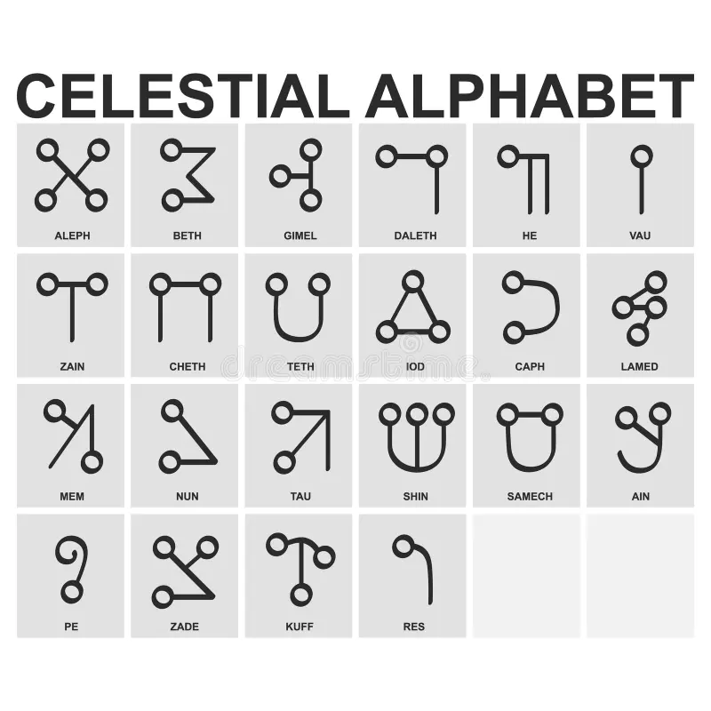 Molto simile al Malachim è un altro alfabeto sempre citato da Agrippa, noto come Alfabeto Celeste o Scrittura Angelica, da non confondere con l’alfabeto enochiano di John Dee ed Edward Kelley, che talvolta è chiamato anch’esso Alfabeto Celeste.